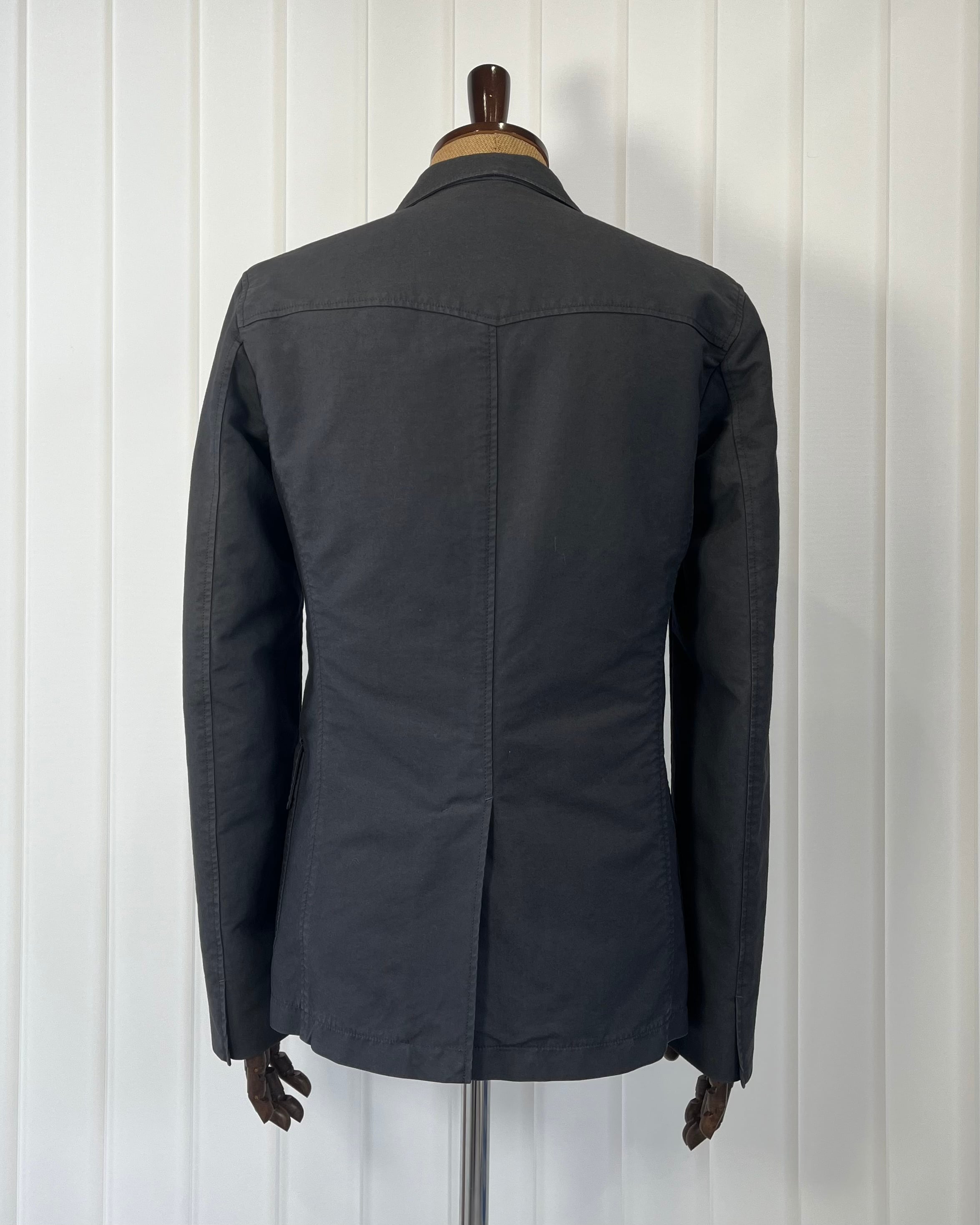 構築的な背面のセンターシームとコンパクトなシルエットは、当時のコレクション全体に通底する「削ぎ落とされた機能美」を体現しており、ラフ期JIL SANDERの中でも静かな実験性を感じさせるピースです。