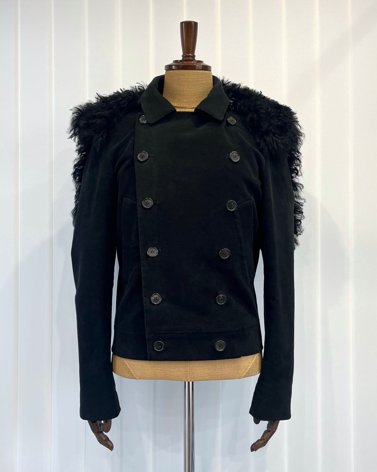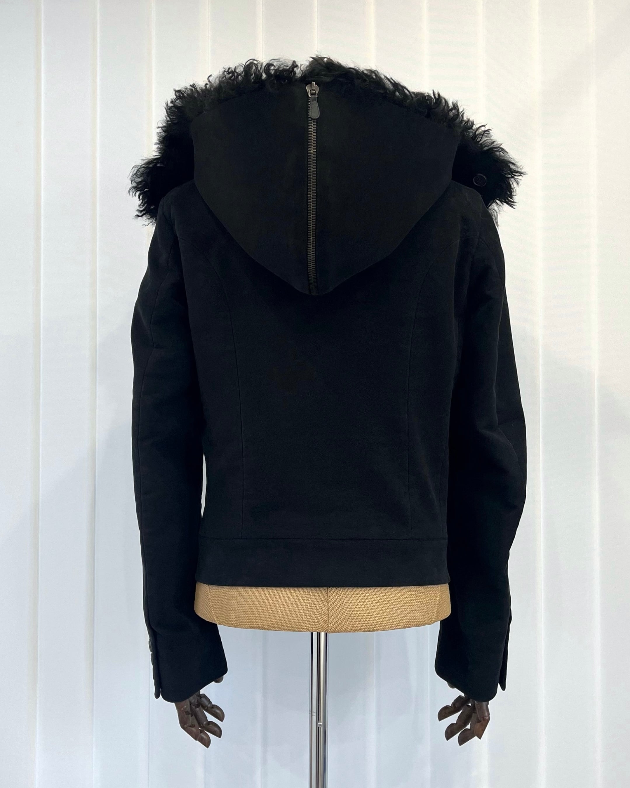 Alexander McQueen FW2005 Moleskin Pea Coat with Convertible Fur Hood Collar